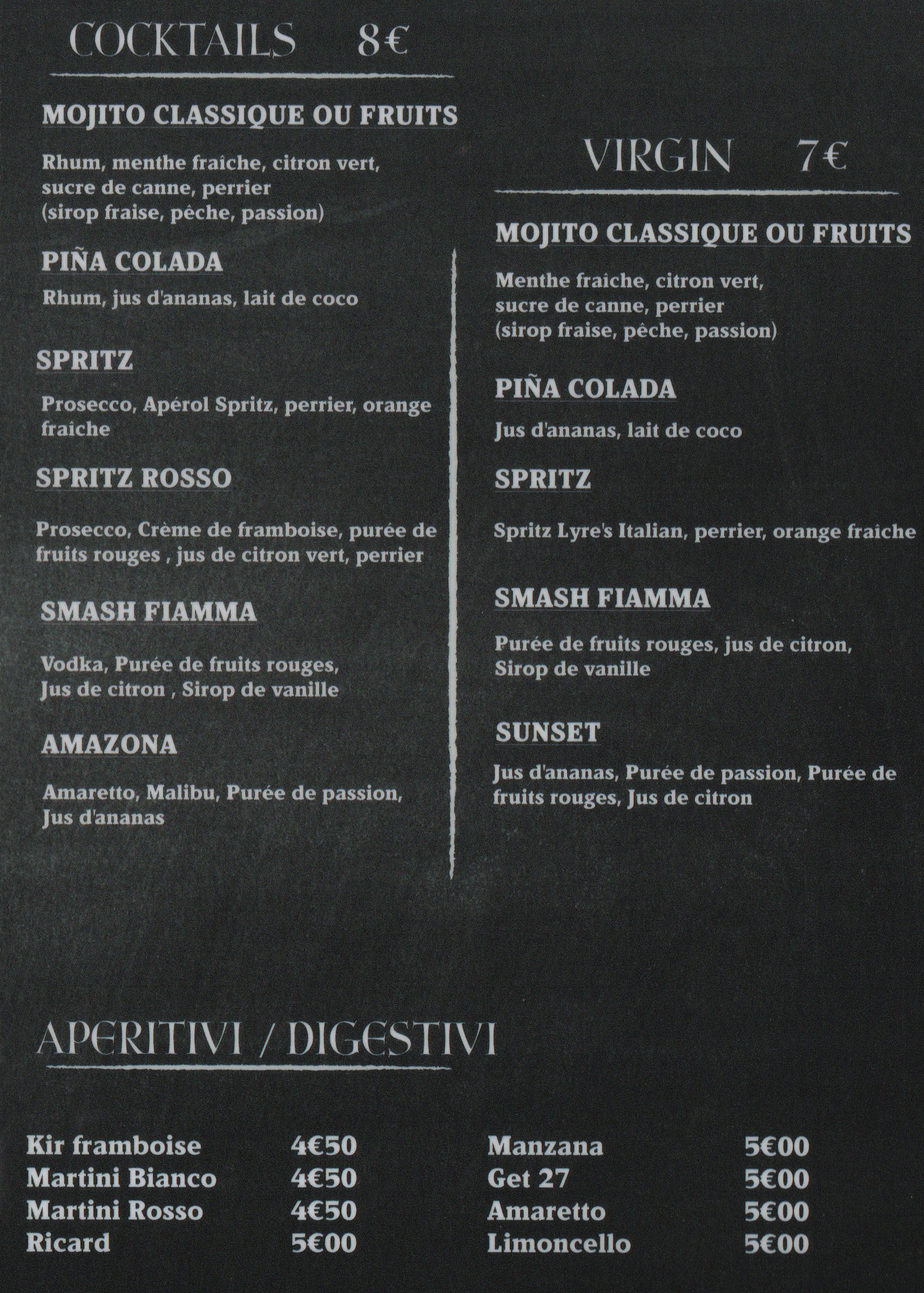Pizzas artisanales au feu de bois sur place ou à emporter.