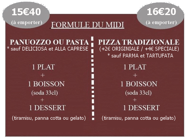 Pizzas artisanales au feu de bois sur place ou à emporter.